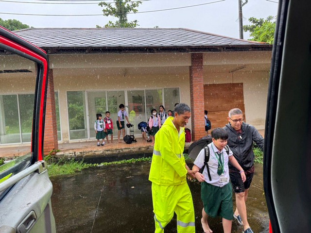 เนื่องจากกำลังสั่งการเจ้าหน้าที่เทศบาลเร่งดำเนินการติดตั้งเครื่องสูบน้ำเพื่อระบายน้ำท่วมขัง ได้เร่งนำรถดับเพลิงเข้าไปรับนักเรียนที่อยู่ในรถรับส่งนักเรียนที่จอดเสีย จำนวน กว่า 10 คน ก่อนจะนำไปส่งยังบริเวณพื้นที่ปลอดภัยจากน้ำท่วม ก่อนประสานกับทางโรงเรียนขจรเกียรติเพื่อเปลี่ยนรถคนใหม่มารับ