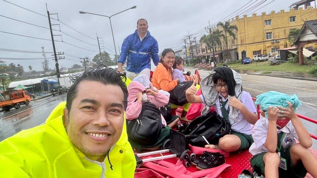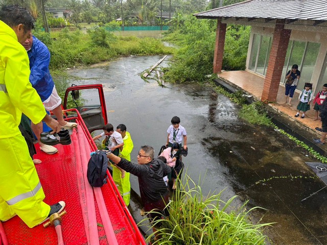 พังงา-ช่วยด้วย!!เดี๋ยวหนูไปโรงเรียนสาย รถรับส่งเด็กนักเรียนน้ำท่วมรถขัดข้องไม่สามารถไปต่อได้