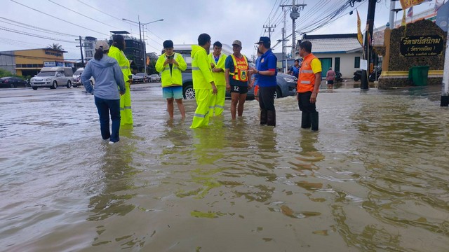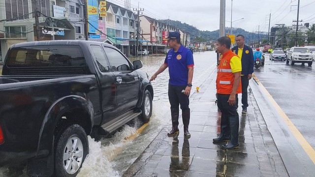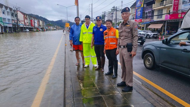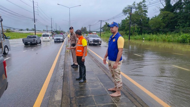 เมื่อวันที่ 22 ต.ค. 68 ผู้สื่อข่าวรายงานว่า ฝนกระหน่ำพังงาตั้งแต่กลางดึกที่ผ่านมาส่งผลให้น้ำจากเทือกเขาวงทะลักเข้าท่วมถนนสายหลัก จนทำให้ถนนเพชรเกษม หมายเลข 4 หน้าหนองมูลตะกั่ว หน้าวัดบางเนืองจนไปถึงทางเข้าอนุสรสถานสึนามิเรือ ต.813 จากอำเภอตะกั่วป่ามุ่งหน้า อำเภอท้ายเหมืองไม่สามารถสัญจรได้ นายพิชญพัทธ์ เรืองชาตรี นายอำเภอตะกั่วป่า นายปณิธาน แก้วหมุน ปลัดฝ่ายความมั่นคงอำเภอตะกั่วป่า
