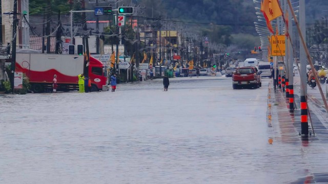 พังงา-ยังวิกฤติอยูู่ ฝนถล่มซ้ำน้ำท่วมบางเนียงรอบสอง ถนนสายหลัก รถเล็กห้ามผ่าน รถติดยาวกว่า 3 กิโลเมตร