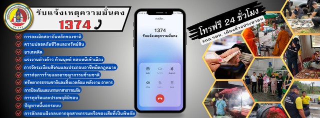 ตามที่ นายกรัฐมนตรี/ผู้อำนวยการรักษาความมั่นคงภายในราชอาณาจักร ได้ดำเนินการเปิดช่องทางให้ประชาชนแจ้งเบาะแสด้านความมั่นคง ผ่านช่องทางการให้บริการ สายด่วน โทร. 1374 และ Facebook : 1374 แจ้งเบาะแส เพื่อความมั่นคง รวมทั้งสนับสนุนให้ทุกภาคส่วนราชการดำเนินการจัดตั้งช่องทางของหน่วยรับแจ้งข้อมูล เพื่อให้ประชาชนได้เข้าถึงอย่างแท้จริง นั้น