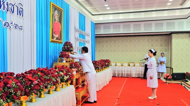 โดยมี นายประภาส ศรีจันทร์เวียง รองผู้ว่าราชการจังหวัดสุรินทร์ รักษาราชการแทนผู้ว่าราชการจังหวัดสุรินทร์ เป็นประธานในพิธีฯ มี หัวหน้าส่วนราชการที่เกี่ยวข้องร่วมกิจกรรม ซึ่งกิจกรรม ประกอบด้วย พิธีสงฆ์ พิธีวางพานพุ่มดอกไม้สดถวายราชสักการะแด่สมเด็จพระศรีนครินทราบรมราชชนนี การกล่าวคำอาศิรวาทราชสดุดีโดยประธานในพิธี พิธีมอบเกียรติบัตร พยาบาลดีเด่น และทันตบุคลากรทรงคุณค่า จังหวัดสุรินทร์ ประจำปี 2568 รวม 40 ราย การร่วมร้องเพลงมาร์ชพยาบาล และบันทึกภาพร่วมกัน และเหล่าพยาบาลร่วมยินดีกับผู้ที่ได้รับรางวัลกันอย่างชื่นมื่น นายแพทย์ยุทธนา วรรณโพธิ์กลาง นายแพทย์สาธารณสุขจังหวัดสุรินทร์ กล่าวว่า ในการขับเคลื่อนงานพยาบาลของจังหวัดสุรินทร์ จะเพิ่มศักยภาพในการดูแลพี่น้องประชาชน ในเรื่องที่สำคัญคือเรื่องคุณภาพการพยาบาล คุณภาพการให้บริการหรือความสัมพันธ์ที่ดี ตามนโยบายของกระทรวงสาธารณสุขด้าน Care D+ ในการเสริมสร้างความสัมพันธ์ของผู้ให้บริการและผู้รับบริการ ด้วยมาตรฐานและการบริการที่ดี ด้วยการร่วมมือกันของพยาบาลทุกหน่วยบริการ