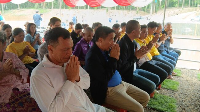 เมื่อเวลา 09.00 น. วันที่ 24 ตุลาคม 2568 ที่บริเวณฝายกักเก็บน้ำบ้านงาช้าง–บ้านเขาตีนเป็ด ตำบลสองพี่น้อง อำเภอท่าแซะ จังหวัดชุมพร นายนพพร อุสิทธิ์ (นายกโต้ง) นายกองค์การบริหารส่วนจังหวัดชุมพร มอบหมายให้ นายกิตติศักดิ์ พรหมรัตน์ (เลขากิต) และนายปราโมทย์ ดาวเรือง เลขานายก อบจ.ชุมพร พร้อมด้วยนายสุชล สินสมบุญ สมาชิกสภา อบจ.ชุมพร เขตอำเภอท่าแซะ, นายอภิชาติ มากยอด สมาชิกสภา อบจ.ชุมพร เขตอำเภอปะทิว, นายปรีชา มีสุวรรณ นายกองค์การบริหารส่วนตำบลสองพี่น้อง, นายสิทธิชัย มากยอด นายกองค์การบริหารส่วนตำบลเขาไชยราช, นายหนูไกร วงธรรม กำนันตำบลสองพี่น้อง, นายสฤษดิ์ ปิ่นเกตุ กำนันตำบลเขาไชยราช, ผู้นำชุมชนและประชาชนในพื้นที่ ร่วมประกอบพิธีถวายภัตตาหารแด่พระภิกษุสงฆ์ และเปิดฝายกักเก็บน้ำบ้านงาช้างอย่างเป็นทางการ