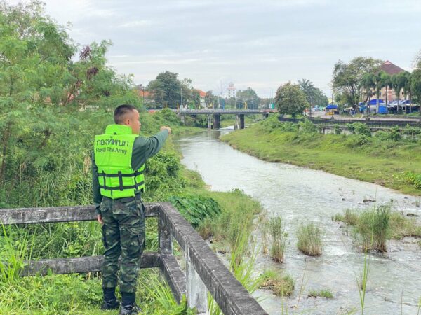 ระนอง -ร.25 พัน.2 จัดชุดประเมินสถานการณ์ภัยพิบัติ สำรวจระดับน้ำในพื้นที่อำเภอเมืองระนอง เตรียมพร้อมป้องกันน้ำท่วม