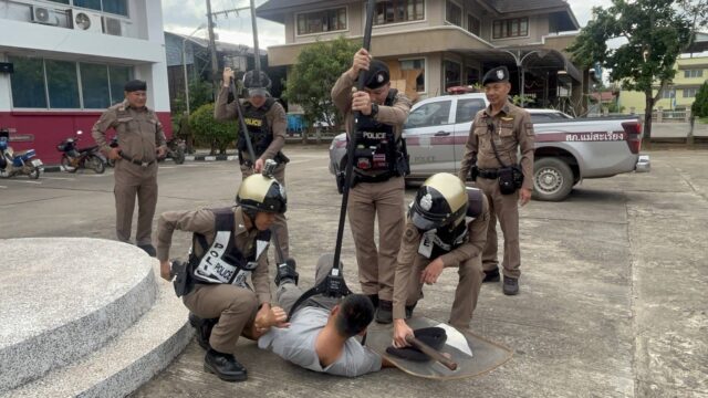แม่ฮ่องสอน-สภ.แม่สะเรียง เพิ่มศักยภาพ เสริมทักษะ ยุทธวิธีการจับกุม การใช้ไม้ง่ามไฟฟ้า แก่เจ้าหน้าที่สายตรวจ