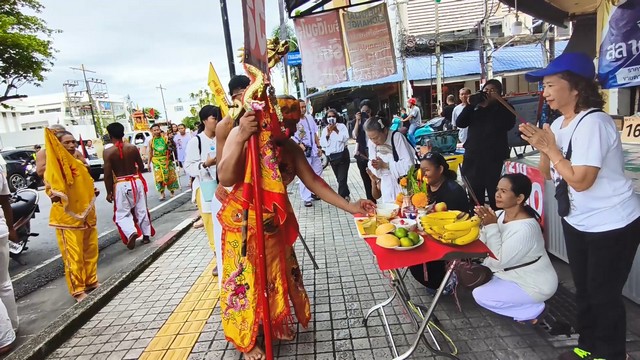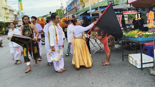 สงขลา-ขบวนแห่พระและองค์เทพศักดิ์สิทธิ์จากศาลเจ้าต่างๆ เนื่องในงานเทศกาลถือศีลกินเจเมืองสงขลาในปีนี้ จัดขบวนแห่แบบเรียบง่าย ตามสถานการณ์ซึ่งอยู่ในช่วงถวายความอาลัย สมเด็จพระนางเจ้าสิริกิติ์ พระบรมราชินีนาถ พระบรมราชชนนีพันปีหลวง
