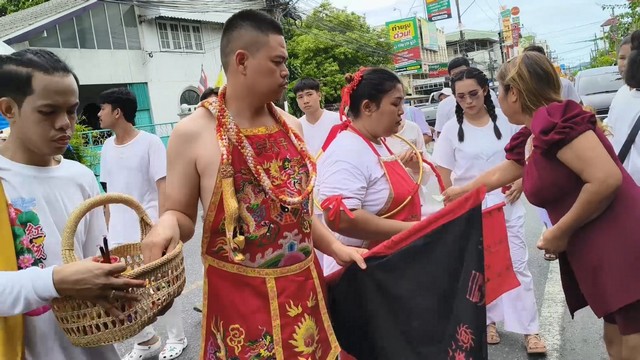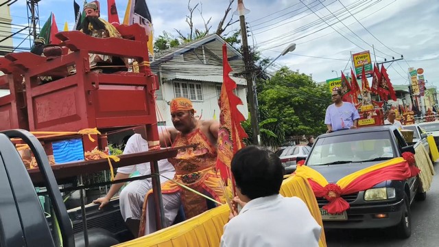 สงขลา-ขบวนแห่พระและองค์เทพศักดิ์สิทธิ์จากศาลเจ้าต่างๆ เนื่องในงานเทศกาลถือศีลกินเจเมืองสงขลาในปีนี้ จัดขบวนแห่แบบเรียบง่าย ตามสถานการณ์ซึ่งอยู่ในช่วงถวายความอาลัย สมเด็จพระนางเจ้าสิริกิติ์ พระบรมราชินีนาถ พระบรมราชชนนีพันปีหลวง