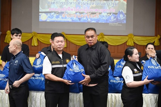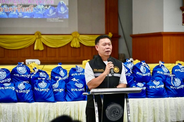 นครปฐม-นายก อบจ. นครปฐมมอบถุงยังชีพให้แก่ประชาชนที่ประสบเหตุอุทกภัยน้ำท่วมในเขตนครชัยศรี