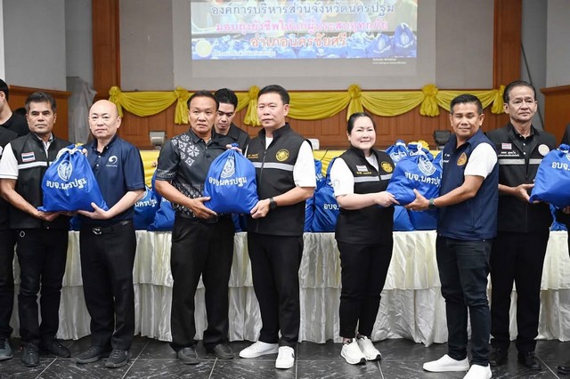 วันอังคารที่ 28 ตุลาคม 2568 ณ หอประชุมที่ว่าการอำเภอนครชัยศรี อบจ.นครปฐม โดยการนำของ นายจิรวัฒน์ สะสมทรัพย์ นายก อบจ.นครปฐม และนางวิลาสินี สะสมทรัพย์ ภริยา พร้อมด้วย สมาชิกสภาฯ หัวหน้าส่วนราชการ ข้าราชการ อบจ.นครปฐม ในการนี้นายอนุชา สะสมทรัพย์ อดีต รมต. ช่วยว่าการกระทรวงสาธารณสุข ได้มีความห่วงใยพี่น้องประชาชน ร่วมลงพื้นที่เพื่อมอบถุงยังชีพให้แก่ผู้นำชุมชน ผู้นำท้องที่ ในพื้นที่น้ำท่วม ในเขตอำเภอนครชัยศรี เพื่อนำไปส่งต่อให้ประชาชนที่ประสบเหตุอุทกภัย