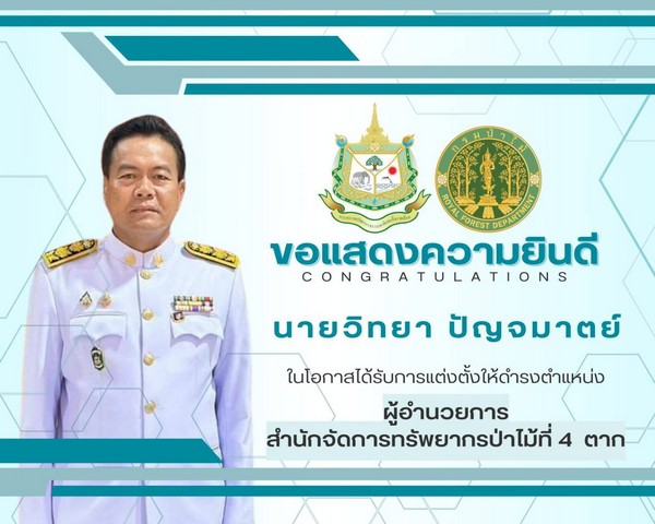 วันที่ 29 ตุลาคม 2568 วิทยา ปัญจมาตย์” ผู้อำนวยการสำนักจัดการทรัพยากรป่าไม้ที่ 4 (ตาก) เปิดเผยว่า เมื่อวันที่ 28 ตุลาคมที่ผ่านมา ได้เดินทางเข้าประดับอินทนูเครื่องแบบกรมป่าไม้ ในโอกาสได้รับการแต่งตั้งให้ดำรงตำแหน่ง ผู้อำนวยการสำนักจัดการทรัพยากรป่าไม้ที่ 4 (ตาก) จากตำแหน่งเดิม ผู้อำนวยการสำนักงานทรัพยากรธรรมชาติและสิ่งแวดล้อม จ.กาฬสินธุ์ (ผอ.ทสจ.กาฬสินธุ์) โดย ดร.ชญานันท์ ภักดีจิตต์ ปลัดกระทรวงทรัพยากรธรรมชาติและสิ่งแวดล้อม ได้ให้ความกรุณาประดับอินทนูเครื่องแบบกรมป่าไม้ พร้อมกับให้กำลังใจในการทำงาน เพื่อเป็นสิริมงคลและเป็นขวัญกำลังใจในการทำงานอย่างดียิ่ง