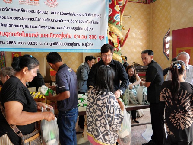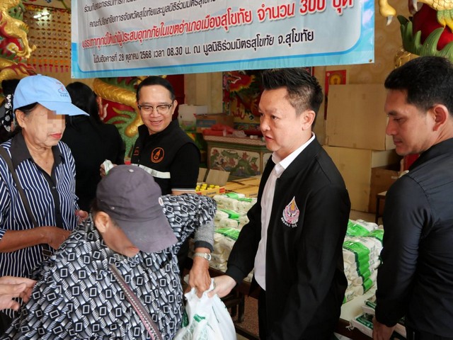 นอกจากนี้ ทางคณะฯ ยังได้ลงพื้นที่ต่างๆ ของจังหวัดสุโขทัย เพื่อมอบสิ่งของและบรรเทาความเดือดร้อนแก่พี่น้องที่ได้รับผลกระทบยังพื้นที่ อ.กงไกรลาศ จำนวน 500 ชุด อ.เมืองสุโขทัย จำนวน 900 ชุด และอ.ศรีสำโรง จำนวน 400 ชุด เมื่อวันที่ 28 ตุลาคม 2568 ที่ผ่านมา