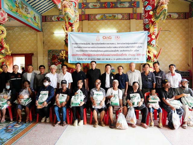 นายสุเมธ คูหเพ็ญแสง อัยการจังหวัดสุโขทัย, นายเจษฎางค์ภูมิ พรหมโชติชัย อัยการจังหวัดคดีเยาวชนและครอบครัวจังหวัดสุโขทัย และนายพิทักษ์ แก้วรอด อัยการจังหวัดคุ้มครองสิทธิและช่วยเหลือทางกฎหมายและการบังคับคดีจังหวัดสุโขทัย คณะกรรมการการมีส่วนร่วมของประชาชนในการพัฒนาสํานักงานอัยการจังหวัดสุโขทัย คณะที่ปรึกษาอัยการจังหวัดสุโขทัยและมูลนิธิร่วมมิตรสุโขทัย มอบสิ่งของอุปโภค บริโภค บรรเทาทุกข์ให้แก่ผู้ประสบอุทกภัยในเขตอำเภอเมืองสุโขทัย จำนวน 300 ชุด เมื่อวันที่ 28 ตุลาคม 2568 ณ มูลนิธิร่วมมิตรสุโขทัย