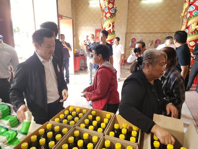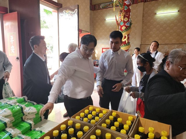 โดยมีนายสุรพล อังศิริจินดา นายกสมาคมพ่อค้าจังหวัดสุโขทัย คณะกรรมการพ่อค้าจังหวัดสุโขทัย คุณอุหัย สุขวสุ ประธานมูลนิธิร่วมมิตรสุโขทัย พร้อมคณะกรรมการมูลนิธิฯ ร่วมมอบสิ่งของ