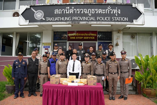 พังงา-นาทีตำรวจและปกครองบุกรวบผู้ต้องหาขณะรอรับยาเสพติด 2 แสนเม็ดส่งทางพัศดุต้นทางภาคเหนือ ขณะ ผวจ.พร้อม ผบก.ภ.จว.พังงาร่วมแถลงข่าวย้ำมาตรการเข้าป้องกันปราบปรามยึดอายัดทรัพย์ที่เกี่ยวข้อง