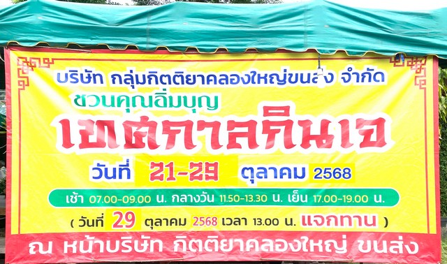 ซึ่งในปีนี้ชาวอําเภอคลองใหญ่ให้ความสนใจในช่วงเทศกาลกินเจกันมากขึ้น ทางบริษัทกิตติยาคลองใหญ่ขนส่งได้จัดงานประเพณีถือศีลกินเจ เป็นประจำทุกๆปีเข้าปีที่ 7 แล้ว และจัดขึ้นในระหว่างวันที่ 21 ตุลาคม ถึง 29 ตุลาคม 2568 นั้น ตลอด 9 วัน มีผู้มาร่วมกิจกรรมกินเจกันอย่างคึกคักในแต่ละวันซึ่งนอกจากจะเป็นการอนุรักษ์สืบสานประเพณีวัฒนธรรมอันดีงามของชาวไทยเชื้อสายจีนแล้ว ยังส่งเสริมครอบครัวและความรักความสามัคคี อีกด้วย