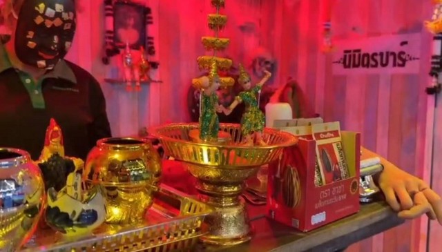 โดยบรรยากาศภายในร้าน “นิมิตรบาร์” ซึ่งตั้งอยู่บริเวณหลังนำชัย พัทยากลาง ถูกเนรมิตให้เป็นบาร์สไตล์ไทยผสมบรรยากาศบ้านร้างคูหาเล็กๆ โดยเก็บรายละเอียดทุกจุดอย่างพิถีพิถัน ทั้งศาลไม้โบราณ เครื่องเซ่น โครงกระดูก ธูปเทียน กะโหลก และแสงไฟสีแดงสลัวที่ช่วยสร้างอารมณ์หลอนให้กับผู้มาเยือน บริเวณหน้าร้านยังมีศาลจุดกรวดน้ำ ให้ร่วม “อธิษฐานก่อนดื่ม” ซึ่งถือเป็นเอกลักษณ์เฉพาะของร้านนี้