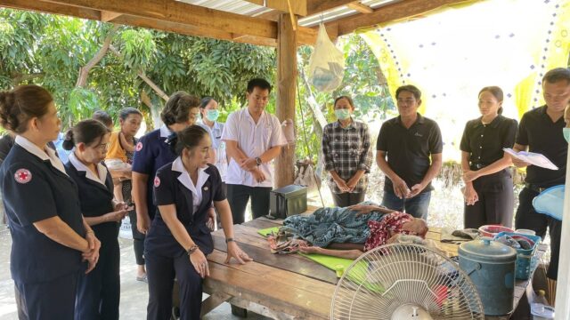 จากนั้นทางคณะเหล่ากาชาด จ.กำแพงเพชร ร่วมกับ เจ้าหน้าที่ปกครองอำเภอโกสัมพีนคร องค์กรปกครองส่วนท้องถิ่น สาธารณสุข ผู้ใหญ่บ้าน อสม. และหน่วยงานที่เกี่ยวข้องร่วมลงพื้นที่เยี่ยม และให้กำลังใจกลุ่มเปราะบาง 3 ราย คือ