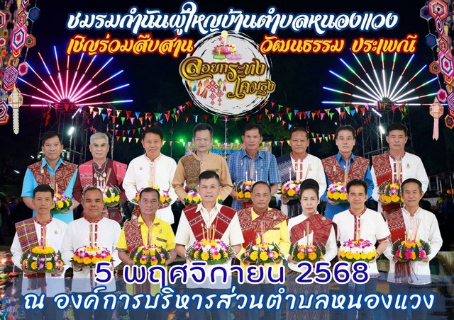 วันที่ 31 ตุลาคม 2568 นายนิยม โยหาสิทธิ์ นายก อบต.หนองแวง อ.สมเด็จ จ.กาฬสินธุ์ กล่าวว่า ในการจัดงานประเพณีลอยกระทงประจำปี 2568 นี้ ทาง อบต.หนองแวง ได้ร่วมกับชมรมกำนัน ผู้ใหญ่บ้าน วัด สภาวัฒนธรรมตำบลฯ และพี่น้องประชาชนจัดขึ้น เพื่อสืบสานวัฒนธรรมประเพณีอันดีงาม ในส่วนของการขอขมาและบูชาพระแม่คงคา สิ่งศักดิ์สิทธิ์ประจำแหล่งน้ำ ตามคติความเชื่อของคนไทย ในวันเพ็ญเดือน 12 ของทุกๆปี ที่ทุกภาคส่วนได้ดำเนินการจัดงาน เพื่ออนุรักษ์ สืบสานและต่อยอด จากรุ่นสู่รุ่นและเป็นมรดกสำคัญของชาติสืบไป