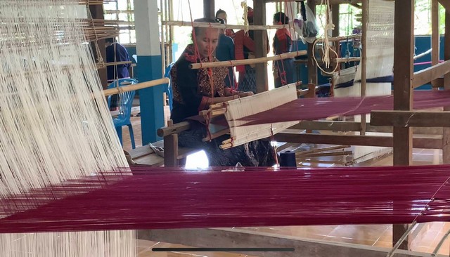 นางถนอม ภูดี อายุ 69 ปี ประธานโครงการส่งเสริมศิลปาชีพบ้านกุดสิมคุ้มเก่า เล่าว่า ในอดีตชาวอำเภอเขาวงประสบปัญหาความยากจน ไม่มีอาชีพและมีปัญหาความแห้งแล้งเนื่องจากสภาพภูมิศาสตร์พื้นที่ เป็นหุบเขาล้อมรอบ แต่ด้วยพระมหากรุณาธิคุณของ พระบรมราชชนนีพันปีหลวง เมื่อวันที่ 25 พฤศจิกายน 2535 จึงได้นำโครงการส่งเสริมศิลปาชีพบ้านกุดสิมคุ้มเก่า มีการนำช่างฝีมือเข้ามาฝึกสอน ทำให้ความเป็นอยู่ของกลุ่มสตรีดีขึ้น และในปัจจุบัน โครงการนี้ฯ ได้ดำเนินการมาต่อเนื่องยังมีสมาชิกจำนวน 92 ราย ที่เป็นกลุ่มแม่บ้านของอำเภอเขาวงและในเขตอำเภอใกล้เคียง ในแต่ละวันจะทำการทอผ้าไหม ผ้าฝ้าย ผ้าย้อมคราม หรือแม้แต่ผ้าไหมแพรวา เมื่อทอเสร็จแล้ว ด้วยความเป็นโครงการส่งเสริมศิลปาชีพ ก็จะมีพ่อค้าแม่ค้าเข้ามารับซื้อเป็นประจำ ทำให้พสกนิกรของพระองค์มีความเป็นอยู่ที่ดี ปัจจุบันโครงการนี้ อยู่ในความดูแลของ กองพลทหารม้าที่ 3 ค่ายเปรมติณสูลานนท์ จังหวัดขอนแก่น