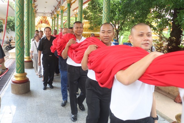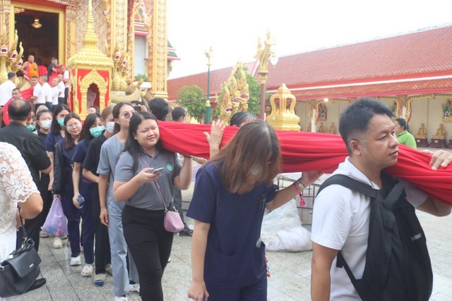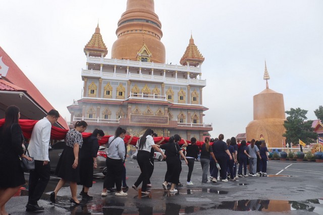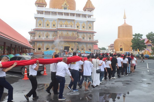 สมุทรปราการ-ศิษย์ยานุศิษย์และพุทธศาสนิกชน ร่วมพิธีแห่ผ้าแดงห่มองค์พระมหาเจดีย์ วัดบางพลีใหญ่กลางความยาวกว่า 70 เมตร