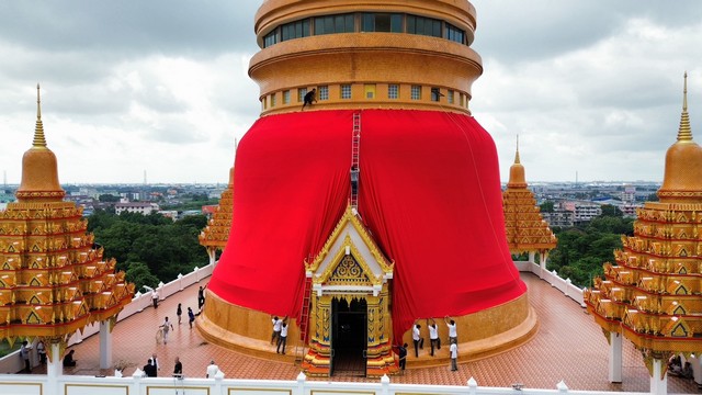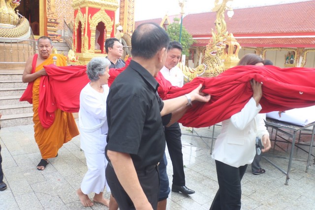 สมุทรปราการ-ศิษย์ยานุศิษย์และพุทธศาสนิกชน ร่วมพิธีแห่ผ้าแดงห่มองค์พระมหาเจดีย์ วัดบางพลีใหญ่กลางความยาวกว่า 70 เมตร