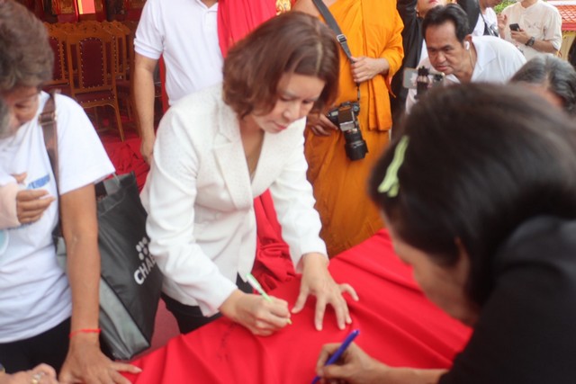นอกจากนี้ ท่านพระวชิรคณาทร (เจ้าคุณแจ้) เจ้าอาวาสวัดบางพลีใหญ่กลาง ได้เมตตาให้ประชาชน และข้าราชการที่เดินทางมาร่วมในพิธีแห่ผ้าห่มองค์พระมหาเจดีย์ได้เขียนชื่อตนเองลงบนผ้าแดงเพื่อเสริมความเป็นสิริมงคล