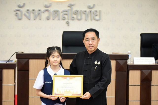 นายนพฤทธิ์ ศิริโกศล ผู้ว่าราชการจังหวัดสุโขทัย ประธานมอบเกียรติบัตรให้แก่นักเรียนและบุคลากรที่เข้าร่วมโครงการ “Coding Thailand 2025 : AI – Driven Future” โดยสำนักงานศึกษาธิการจังหวัดสุโขทัย ณ ห้องประชุมศรีสัชนาลัย ชั้น 5 ศาลากลางจังหวัดสุโขทัย ในการประชุมคณะกรมการจังหวัดสุโขทัย หัวหน้าส่วนราชการ หัวหน้าหน่วยงานรัฐวิสาหกิจ นายอำเภอ ผู้บังคับการ ผู้บริหารองค์กรปกครองส่วนท้องถิ่น ผู้บริหารสถาบันการศึกษา และผู้นำองค์กรเอกชน วันที่ 31 ตุลาคม 2568
