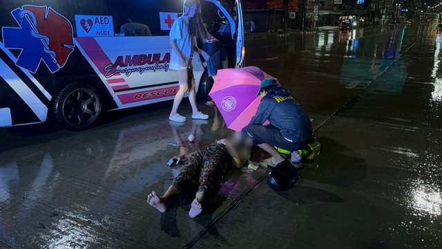 ชลบุรี-หนุ่มขี่ จยย.ผ่าสายฝนถนนลื่นชนท้ายรถขยะเจ็บสาหัส