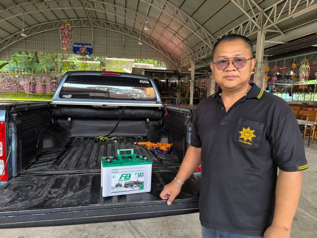 นครนายก คลิปจับภาพ คนร้ายไม่กลัวบาปลักแบตเตอรี่รถยนต์วัดคีรีวันหลบหนี
