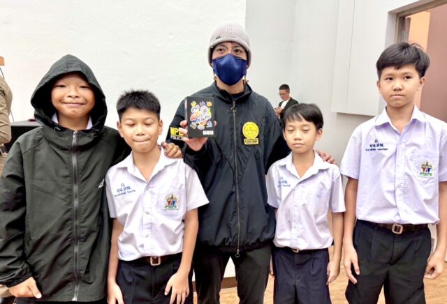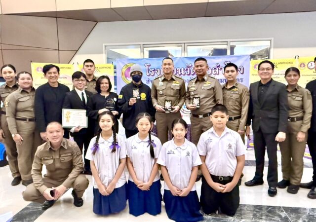 ส่วน พล.ต.ท.นิธิธร เป็นผู้มอบโล่กิตติคุณให้แก่โรงเรียนที่ทำผลงานระดับสูงสุด สถานศึกษาดีเด่น ได้แก่ รร.มัธยมวัดสิงห์ สถานศึกษาดีเยี่ยม ได้แก่ รร.วัดแสนสุข และสถานศึกษาดีมาก ได้แก่ รร.วัดหัวลำโพง