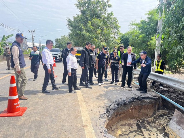 ปทุมธานี ผู้ว่าฯเอกวิทย์ ลงพื้นที่ด่วน ตรวจสอบสถานการณ์น้ำในแม่น้ำเจ้าพระยาที่กัดเซาะถนนบริเวณหน้าโรงเรียนวัดเมตารางค์