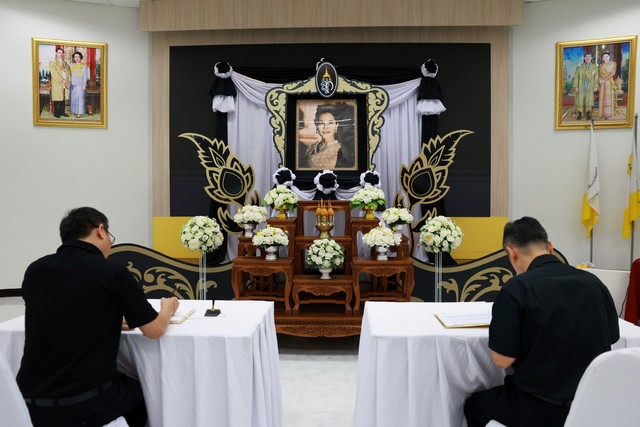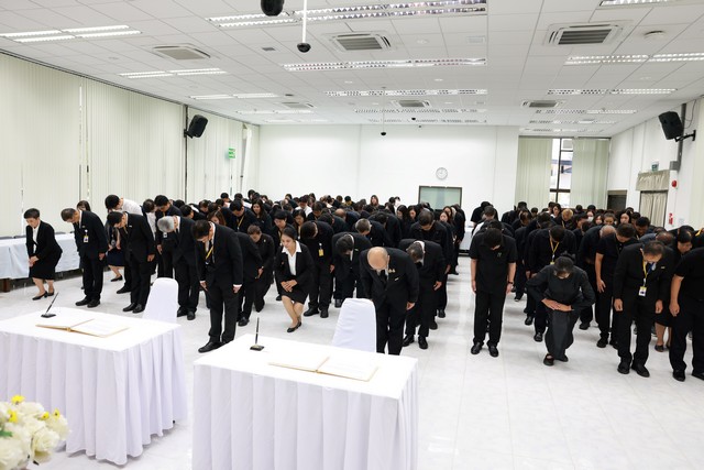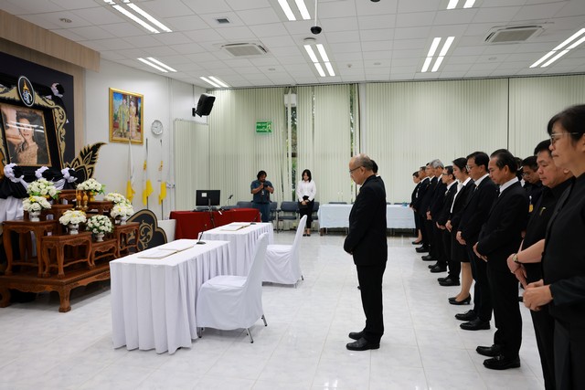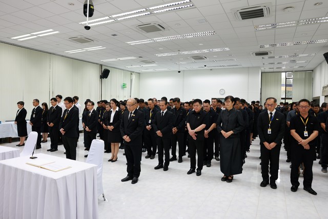 โดยผู้เข้าร่วมพิธีร่วมกันถวายความเคารพเบื้องหน้าพระฉายาลักษณ์ ยืนสงบนิ่งเป็นเวลา 1 นาที และลงนามในสมุดแสดงความอาลัย เพื่อแสดงความจงรักภักดีและสำนึกในพระมหากรุณาธิคุณอันหาที่สุดมิได้