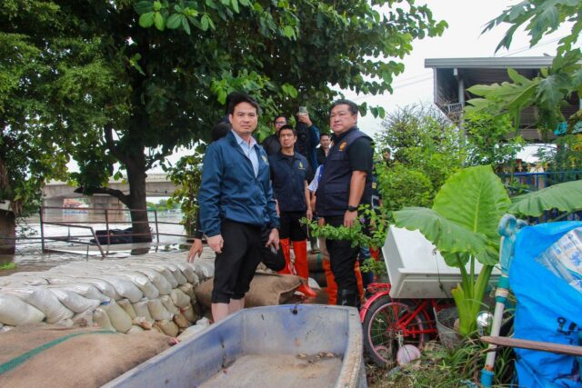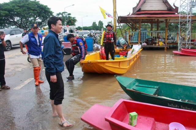 อ่างทอง-รมต.ภราดร ลงพื้นที่ตรวจติดตามสถานการณ์น้ำในจังหวัดอ่างทอง พร้อมสั่งประเมินสถานการณ์ฝนจากพายุลูกใหม่
