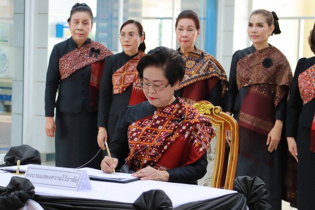 วันที่ 7 พฤศจิกายน 2568 ที่บริเวณห้องโถง ศาลากลาง จ.กาฬสินธุ์ ซึ่งเป็นจุดที่ทางจังหวัด ได้จัดไว้เป็นสถานที่ถวายราชสักการะพระบรมฉายาลักษณ์ สมเด็จพระนางเจ้าสิริกิติ์ พระบรมราชินีนาถ พระบรมราชชนนีพันปีหลวง พร้อมลงนามแสดงความไว้อาลัย นางระเบียบ ร่มไทรทอง ประธานชมรมแม่ดีเด่นแห่งชาติประจำ จ.กาฬสินธุ์ นางอรนุช เยี่ยมสมบัติ ประธานชมรมสตรีไทยดีเด่นแห่งชาติ จ.กาฬสินธุ์ นางพรรณวดี รอดงาม นายกสมาคมส่งเสริมผ้าไทย จ.กาฬสินธุ์ และนางจงกลนี เกียรติดำเนินงาม อุปนายกชมรมแม่ดีเด่นแห่งชาติประจำ จ.กาฬสินธุ์ พร้อมด้วยคณะกรรมการและสมาชิก แต่งกายด้วยชุดดำไว้ทุกข์ เพื่อร่วมกันถวายราชสักการะ ต่อหน้าพระบรมฉายาลักษณ์และลงนามแสดงความไว้อาลัย บรรยากาศเต็มไปด้วยความโศกเศร้า ต่างน้อมรำลึกในพระมหากรุณาธิคุณ “สมเด็จพระพันปีหลวง” อย่างหาที่สุดมิได้