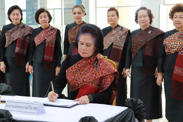 วันที่ 7 พฤศจิกายน 2568 ที่บริเวณห้องโถง ศาลากลาง จ.กาฬสินธุ์ ซึ่งเป็นจุดที่ทางจังหวัด ได้จัดไว้เป็นสถานที่ถวายราชสักการะพระบรมฉายาลักษณ์ สมเด็จพระนางเจ้าสิริกิติ์ พระบรมราชินีนาถ พระบรมราชชนนีพันปีหลวง พร้อมลงนามแสดงความไว้อาลัย นางระเบียบ ร่มไทรทอง ประธานชมรมแม่ดีเด่นแห่งชาติประจำ จ.กาฬสินธุ์ นางอรนุช เยี่ยมสมบัติ ประธานชมรมสตรีไทยดีเด่นแห่งชาติ จ.กาฬสินธุ์ นางพรรณวดี รอดงาม นายกสมาคมส่งเสริมผ้าไทย จ.กาฬสินธุ์ และนางจงกลนี เกียรติดำเนินงาม อุปนายกชมรมแม่ดีเด่นแห่งชาติประจำ จ.กาฬสินธุ์ พร้อมด้วยคณะกรรมการและสมาชิก แต่งกายด้วยชุดดำไว้ทุกข์ เพื่อร่วมกันถวายราชสักการะ ต่อหน้าพระบรมฉายาลักษณ์และลงนามแสดงความไว้อาลัย บรรยากาศเต็มไปด้วยความโศกเศร้า ต่างน้อมรำลึกในพระมหากรุณาธิคุณ “สมเด็จพระพันปีหลวง” อย่างหาที่สุดมิได้