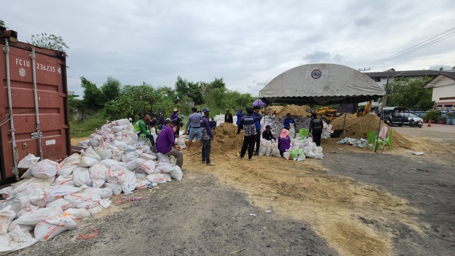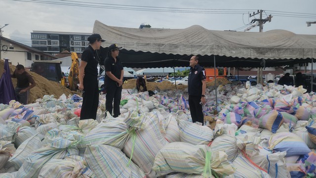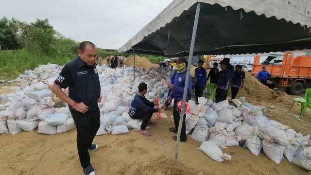 ปทุมธานี ป้องกันเต็มที่ นายกโบว์ลิ่ง ทน.รังสิต เตรียมกระสอบทราบ 27,000 ลูก รับมือพายุ คัลแมกี