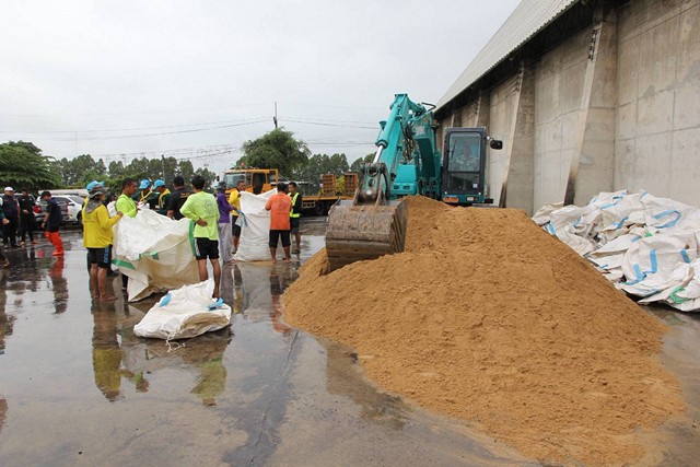 ต่อมาเมื่อเวลาประมาณ 11.00 น.ของวันนี้(08พย.68) รถบรรทุกจำนวน 10 คันรถ ลำเลียงทรายเข้าสู่ลานกว้างของบริษัท ร่วมกิจอ่างทองคลังสินค้า จำกัด ซึ่งใช้เป็นที่กรอกทรายใส่ถุงบิ๊กแบ็ค เพื่อนำไปอุดรอยรั่วและชะลอน้ำบริเวณบริเวณสะพานป่าโมก โดยมีกำลังพลจิตอาสาหน่วยพระราชทานกองทัพบก พล.1 รอ จำนวน 20 นาย อส.10 นาย และรถเทรลเลอร์ 4 คัน ร่วมดำเนินการ