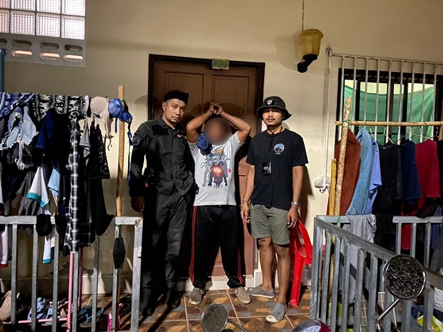 วันที่ 7 พ.ย.68 ร.ต.อ.มาตุภูมิ ธรรมเนียม หัวหน้าชุดป้องกันและปราบปรามยาเสพติด ร้อย ตชด.445 สืบทราบว่าที่ บ้านเลขที่ 87/49 ม.7 ข้างกุโบร์บันนังซิแน ต.ยะรม อ.เบตง จ.ยะลา มีการลับลอบจำหน่ายยาเสพติดและมั่วสุมเสพยาเสพติด โดยมักจะนำยาเสพติดมาซุกซ่อนภายในรถบรรทุกไม้ยางพาราซึ่งจอดอยู่ในโรงจอดรถข้างบ้าน จึงรายงานให้ พ.ต.ท.อเนชา ตาวัน ผบ.ร้อย ตชด.445 รับทราบ พร้อมนำกำลังเจ้าหน้าที่ ตชด. ชุดป้องกันและปราบปรามยาเสพติด (ชป.นเรศ), ชปพ.ตชด.445 และ ชป.ขว. ร้อย ฉก.ตชด.444 เข้าตรวจค้นจับกุม