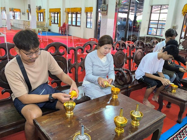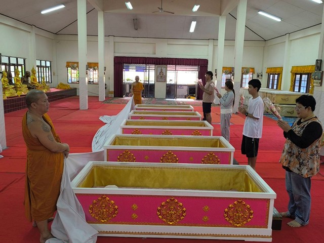 โดยมีนักท่องเที่ยว ได้ดูข่าวจากสื่อทีวีและสื่อออนไลน์ได้ให้ความสนใจพาครอบครัวบุตรหลานมาเข้าพิธีกรรมการนอนโลงศพเพื่อเป็นการสะเดาะเคราะห์ต่อดวงชะตาชีวิต พร้อมเจิมหน้าผาก เจิมฝ่ามือ เจิมกระเป๋าสตางค์ เจิมโทรศัพท์มือถือ จุดประสงค์ของการจัดพิธีดังกล่าว ไม่ใช่เพียงเพื่อการสะเดาะเคราะห์ต่อดวงชะตาอย่างเดียวแต่ยังต้องการสื่อให้ทุกคนได้รู้ว่าที่สุดแล้วทุกคนต้องตาย โดยมีพระสงฆ์จะสวดบังสกุลตายให้ผู้ที่นอนโลงศพ จะหันหัวไปทางทิศตะวันตก และกลับหัวมาทิศตะวันออก พระสงฆ์จะสวดบังสกุลเป็นพร้อมให้ศิล ให้พร เพื่อให้สิ่งชั่วร้ายและสิ่งไม่ดีทั้งหลายทั้งปวงออกจากตัวไป