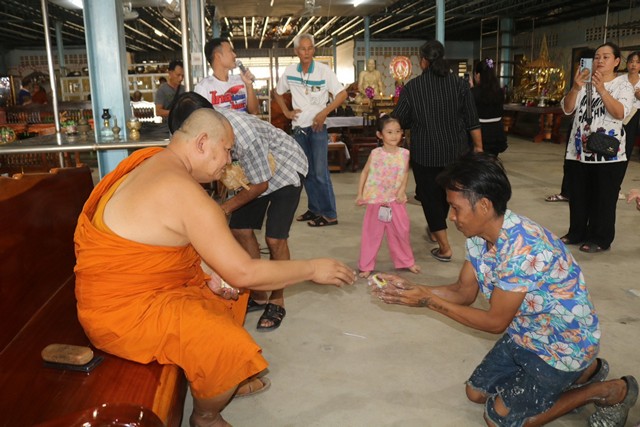 หลังจากนั้น พระครูปฐมสาธุวัฒน์ อ.เทพ. เจ้าอาวาสได้แจกวัตถุมงคลเหรียญหลวงปู่สิทธิขัย สิทธิชโย ให้เป็นที่ระลึกแด่ญาติโยมผู้มาร่วมงาน ทุกๆคน ต่อด้วยพระภิกษุสงฆ์ ฉันภัตราหารเพล เป็นอันเสร็จสิ้นพิธีสงฆ์
