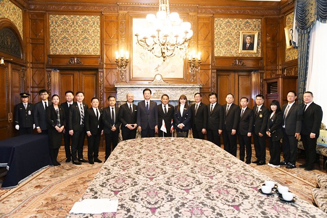 ดร.ฉลาด ขามช่วง รองประธานสภาผู้แทนราษฏร คนที่สอง พร้อมคณะ ประกอบด้วย นายภูมิพัฒน์ พชรทรัพย์ สมาชิกสภาผู้แทนราษฏร เขต 1 นครพนม พรรคเพื่อไทย , นายทินพล ศรีธเรศ สมาชิกสภาผู้แทนราษฏร เขต 5 กาฬสินธุ์ พรรคเพื่อไทย ,นายนิติพล ผิวเหมาะ สมาชิกสภาผู้แทนราษฏร แบบบัญชีรายชื่อพรรคประชาชน และคณะทำงานรองประธานสภาผู้แทนราษฏร คนที่สอง ร่วมเดินทางศึกษาดูงานรัฐสภา ประเทศญี่ปุ่น โดยเข้าเยี่ยมคารวะ นายโคอิชิโร เกมบะ รองประธานสภาผู้แทนราษฏร ญี่ปุ่น ณ อาคารรัฐสภา กรุงโตเกียว ประเทศญี่ปุ่น ในวันที่ 11 พฤศจิกายน 2568