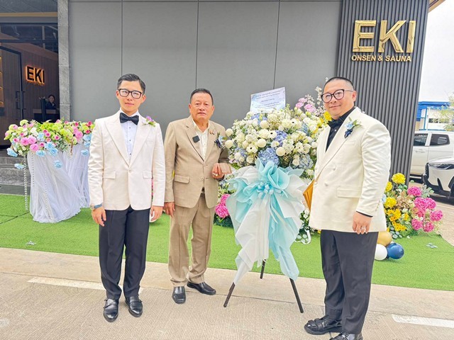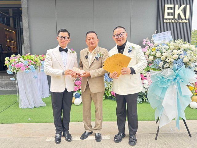 น้องริชาร์ด ส่วนกลางรัฐบาลจีน กล่าวเสริม ว่าวันนี้ได้มาร่วมพิธีเปิด บริษัทเอกิ ออนเซ็น แอนด์ ซาวน่าใหม่เป็นซาวน่าระดับพรีเมี่ยมเพื่อสุขภาพกายและใจแห่งใหม่ย่านบางบัวทองที่เหมาะสำหรับทุกคน กระผมได้สนับสนุนปฐมฤกษ์ซื้อบัตรวีไอพีจำนวน 8 ใบใบละ 50,000 บาทรวม 400,000 บาทกิจการจะได้เจริญรุ่งเรืองเงินทองไหลมาเทมาตลอดปีและตลอดไป
