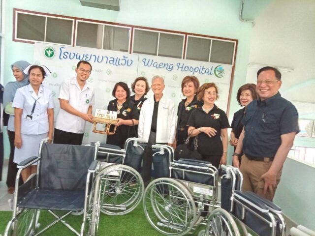 โดยในครั้งนี้ทาง สโมสรโรตารี่สัมพันธวงศ์ นำโดย นย.มยุรี พิพัฒน์กุลสวัสดิ์ นายกสโมสรโรตารีสัมพันธวงศ์ พร้อมคณะ และ ผู้ช่วยผู้ว่าการภาค สุพรรณี ประทีปเวฬุริยะ มอบอุปกรณ์ทางการแพทย์ให้กับผู้อำนวยการโรงพยาบาลอำเภอแว้ง จังหวัดนราธิวาส โดยครั้งนี้ทาง ว่าที่ร้อยตรี. ธนิตศักดิ์ ดารามั่น ได้กล่าวเพิ่มเติมว่าตนเองมาในฐานะอดีตนายกสโมสรโรตารี่พญาไท และตัวแทนสโมสรโรตารี่พญาไท ภาค 3350 ในครั้งนี้ได้รับฟัง สภาพการปฏิบัติหน้าที่ของบุคลากรทางการแพทย์แล้วรู้สึกเห็นใจเป็นอย่างยิ่ง ประกอบกับอัตรากำลังซึ่งยังขาดอยู่หลายอัตรากำลังรวมถึงอาคารสถานที่ซึ่งไม่เพียงพอต่อการรองรับผู้ป่วยในแต่ละวัน โดยทางโรงพยาบาลยังทำหน้าที่ในการบำบัด ผู้ติดยาเสพติดให้โทษ ที่มาเข้าโครงการอีกเป็นจำนวนมากนี่ก็เป็นอีกปัญหาหนึ่งของใน 3 จังหวัดชายแดนภาคใต้