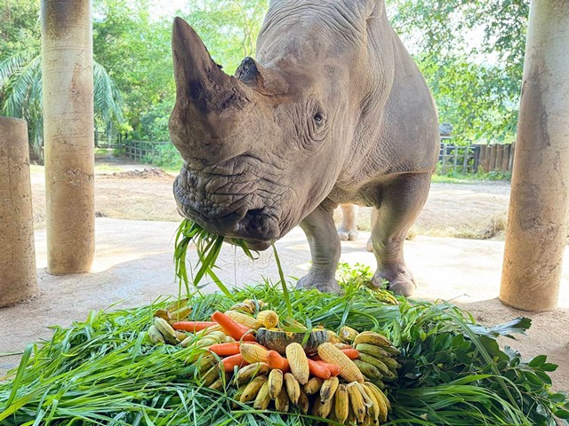 สวนสัตว์เปิดเขาเขียวจัดกิจกรรมฉลองวันเกิด “เจ้าซูดี้” แรดขาวหนุ่มเนื้อหอม อายุครบ 21 ปี