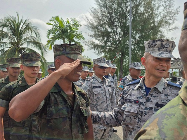 วันนี้ 11 พ.ย.2567 พลเรือโท วีรุดม ม่วงจีน ผู้บัญชาการทัพเรือภาคที่ ๓ และในฐานะผู้อำนวยการศูนย์อำนวยการรักษาผลประโยชน์ของชาติทางทะเลภาค ๓ พร้อมด้วย พลเรือตรี บรรณวิตร์ เฉลิมทอง รองผู้อำนวยการ ศรชล.ภาค ๓ และคณะ ในโอกาสเดินทางมาตรวจเยี่ยมและมอบนโยบายให้กับกำลังพล รวมทั้งรับทราบปัญหาอุปสรรคข้อขัดข้องในการปฏิบัติงานที่ผ่านมาของหน่วยงานใน ศรชล.ภาค ๓ พื้นที่จังหวัดสตูลโดยมีน.อ.รัฐพล แก้วกระจาย ร.น. หัวหน้าศูนย์ควบคุมความมั่นคงท่าเรือจังหวัดสตูล