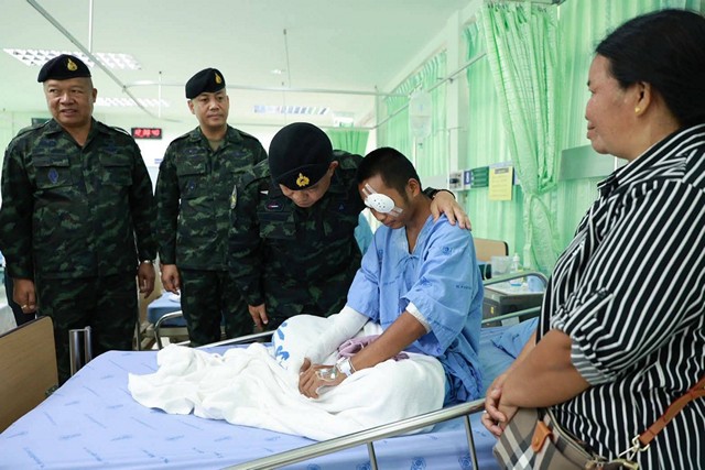 แม่ทัพภาคที่ 2 เยี่ยมให้กำลังใจกำลังพลบาดเจ็บจากเหตุเหยียบกับระเบิดชายแดน