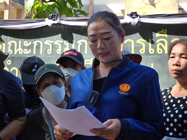 ขอแสดงความนับถือตัวแทนสมาชิกพรรคผู้มีสิทธิ์เลือกตั้งในพื้นที่เขต 2 จังหวัดเชียงใหม่ หลังจากอ่านแถลงการณ์ ได้ยืนหนังสือให้ต่อ หัวหน้าสาขาพรรคเพื่อไทย โดย