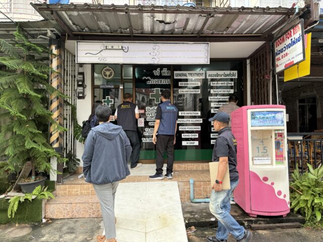ล่าสุด เมื่อช่วงเย็นวันที่ 12 พ.ย. พ.ต.อ.เทียนชัย เลิศมณีทวีทรัพย์ ผกก.กก.สืบสวน 1 บก.สส.ภ.2 พร้อม นายจิระสันต์ มีรัตน์ธนวัต เภสัชกรชำนาญการพิเศษ นำกำลังร่วมกับเจ้าหน้าที่สาธารณสุขจังหวัดชลบุรี เข้าตรวจสอบ เซ็นเตอร์ พัทยา คลินิกเวชกรรม เลขที่ 202/109 ม.9 ต.หนองปรือ อ.บางละมุง จ.ชลบุรี หลังสืบทราบว่าเปิดให้บริการโดยไม่ได้รับอนุญาต และมี “หมอเถื่อน” เป็นผู้ทำการรักษา