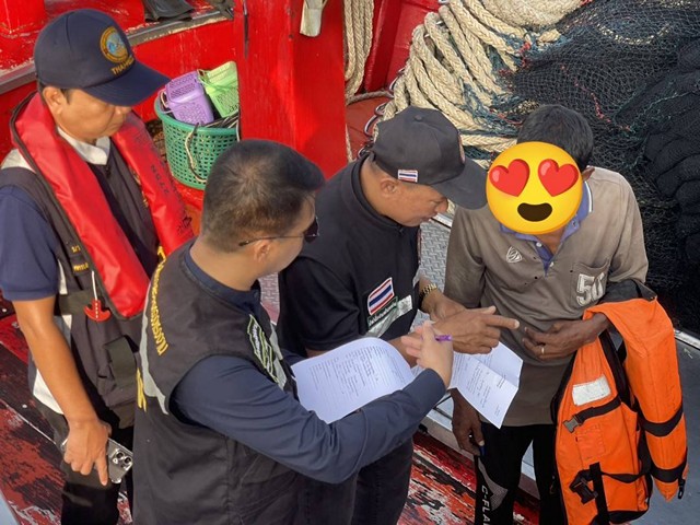 ผลการตรวจ เครื่องมือประมงถูกต้อง ไม่มีการเคลื่อนย้ายอุปกรณ์ติดตามเรือ (VMS) เรือมีสัญญาจ้าง ทะเบียนลูกจ้าง เอกสารการจ่ายค่าจ้างและเอกสารเวลาพัก พนักงานตรวจแรงงานสุ่มสัมภาษณ์ลูกจ้างไทย 2 คน และสัมภาษณ์ลูกจ้างเมียนมา 3 คน ไม่มีการใช้แรงงานเด็กและแรงงานบังคับ ไม่พบความผิดเกี่ยวกับการค้ามนุษย์ด้านแรงงาน สถานการณ์แรงงานประมงปกติ ไม่มีแนวโน้มการเลิกจ้าง พร้อมทั้งได้แนะนำและ ประชาสัมพันธ์พระราชบัญญัติแก้ไขเพิ่มเติมพระราชกำหนดการประมง พ.ศ. 2558 พ.ศ. 2568 มาตรการการป้องกันยาเสพติด และการดูแลรักษาความสะอาดในท้องทะเลเพื่อรักษาระบบนิเวศทางธรรมชาติให้มีความยั่งยืนต่อไป