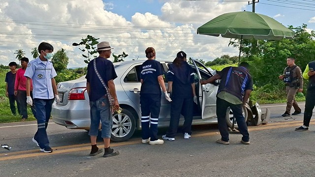 เจ้าหน้าที่ตำรวจพร้อมด้วยอาสาสมัครกู้ชีพกู้ภัยโรงพยาบาลตรอนพร้อมกับอาสาสมัครกู้ภัยวัดหมอนไม้ จึงได้รุดไปยังที่เกิดเหตุ ในที่เกิดเหตุพบชาวบ้านกำลังยืนมุงดูและช่วยกันโบกรถที่ผ่านไปผ่านมาเพื่ออำนวยสะดวกป้องกันเหตุซ้ำซ้อน และบนถนนได้พบกับรถเก๋งโตโยต้าวีออส สีบรอนซ์ ทะเบียน (ขอสงวนเลขทะเบียนรถ)อุตรดิตถ์ สภาพด้านหน้ารถพังยับ มีชายวัย ประมาณ 60-70 ปี นอนอยู่ภายในรถเนื่องจากแน่นหน้าอก ออกจากรถไม่ได้ นอนรอรถกู้ภัยมาปฐมพยาบาลเบื้องต้นและยังมีเด็กผู้หญิงอายุ1 ขวบ กับ 15 ขวบที่นั่งมาด้วยได้รับบาดเจ็บซึ่งมีการช่วยเหลือนำไปนั่งรอภายในบริเวณปั้มรออาสาสมัครกู้ภัยมาช่วยเหลือ ในขณะที่ บริเวณภายในปั้ม มีรถกระบะ นิสสัน บก(ขอสงวนเลขทะเบียนรถ)สีบรอนซ์ สภาพด้านมีรอยเฉี่ยวชนจนทะเบียนยุบลงไปจอดอยู่บริเวณภายในปั้ม นอกจากนี้ยังมีจักรยานยนต์รถฮอนด้าสีดำ ทะเบียน กยค (ขอสงวนเลขทะเบียนรถ)อุตรดิตถ์ ที่ถูกเฉี่ยวชนเสียหายเล็กน้อย จอดอยู่บริเวณด้านหน้าปั่ม